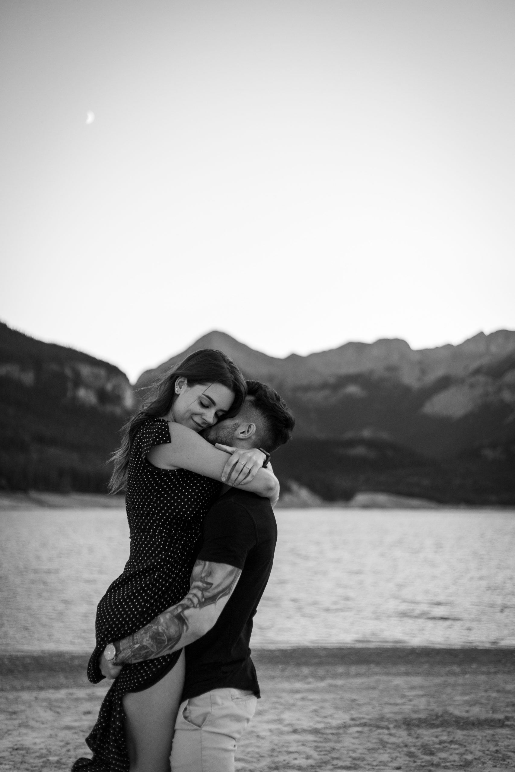We finished the session at another alpine lake, with the final dusting of light peaking over the mountain tops. They laughed and danced, as they splashed around in the water with permanent smiles on their faces. The moon peaked out as we were finishing up a perfect evening.