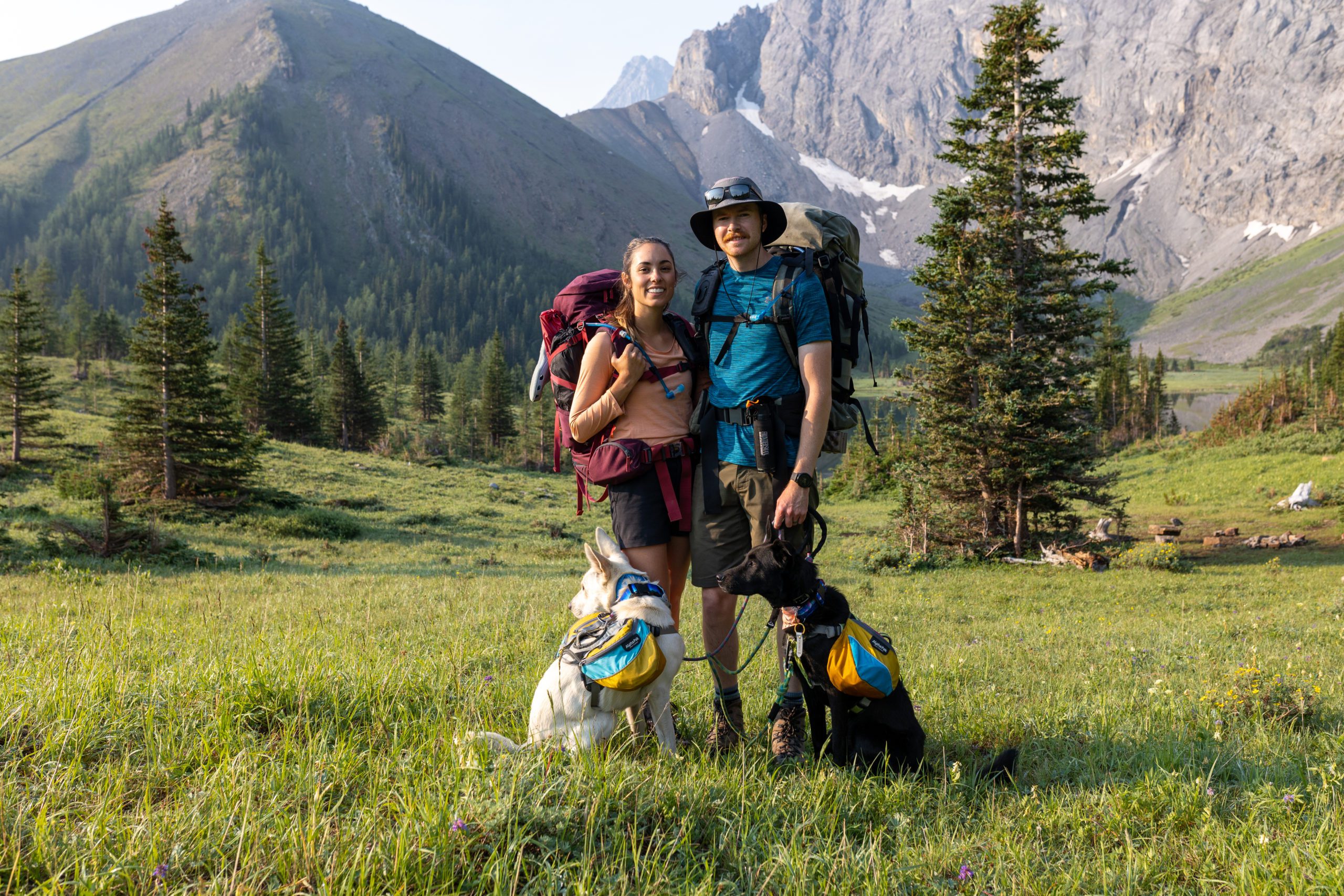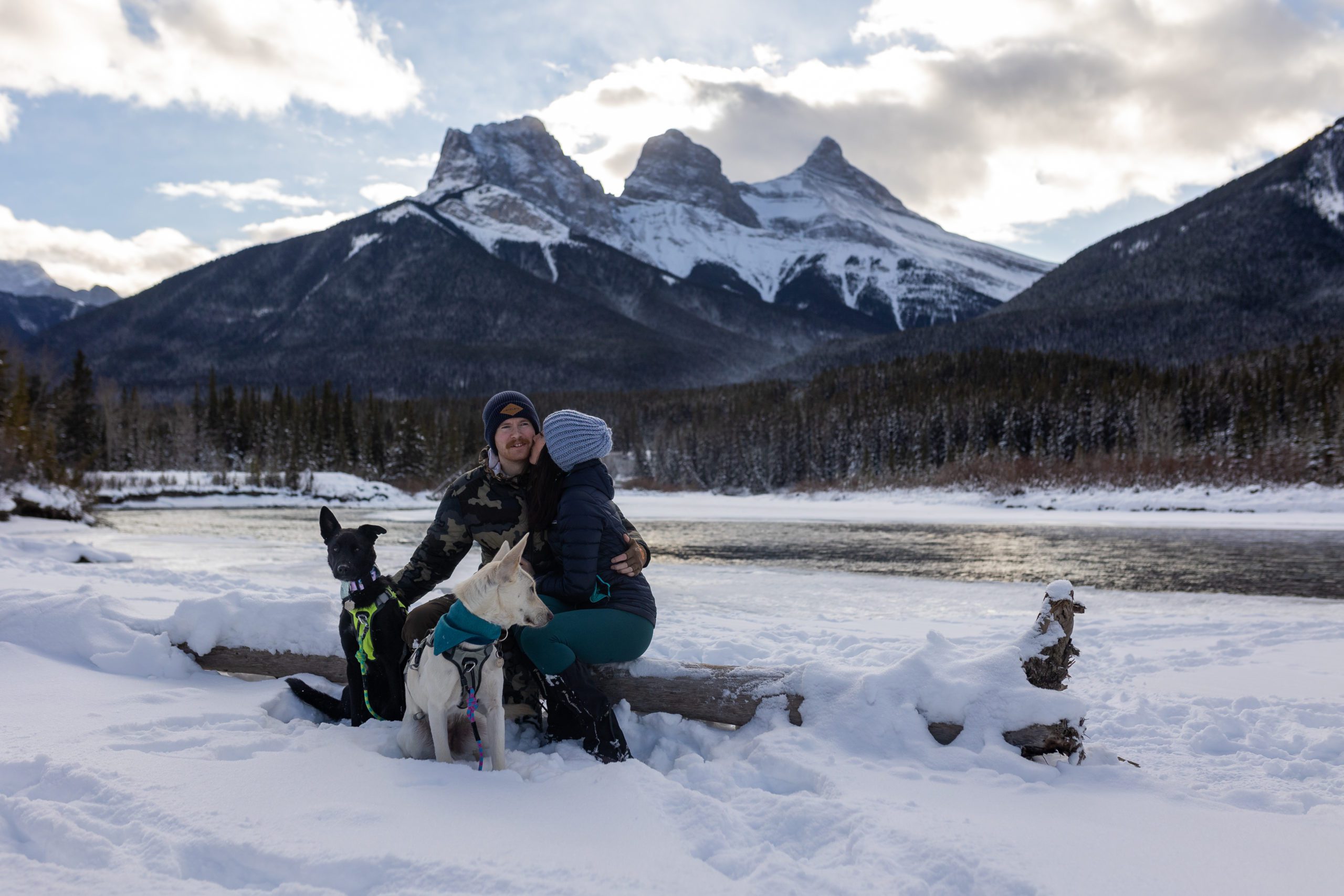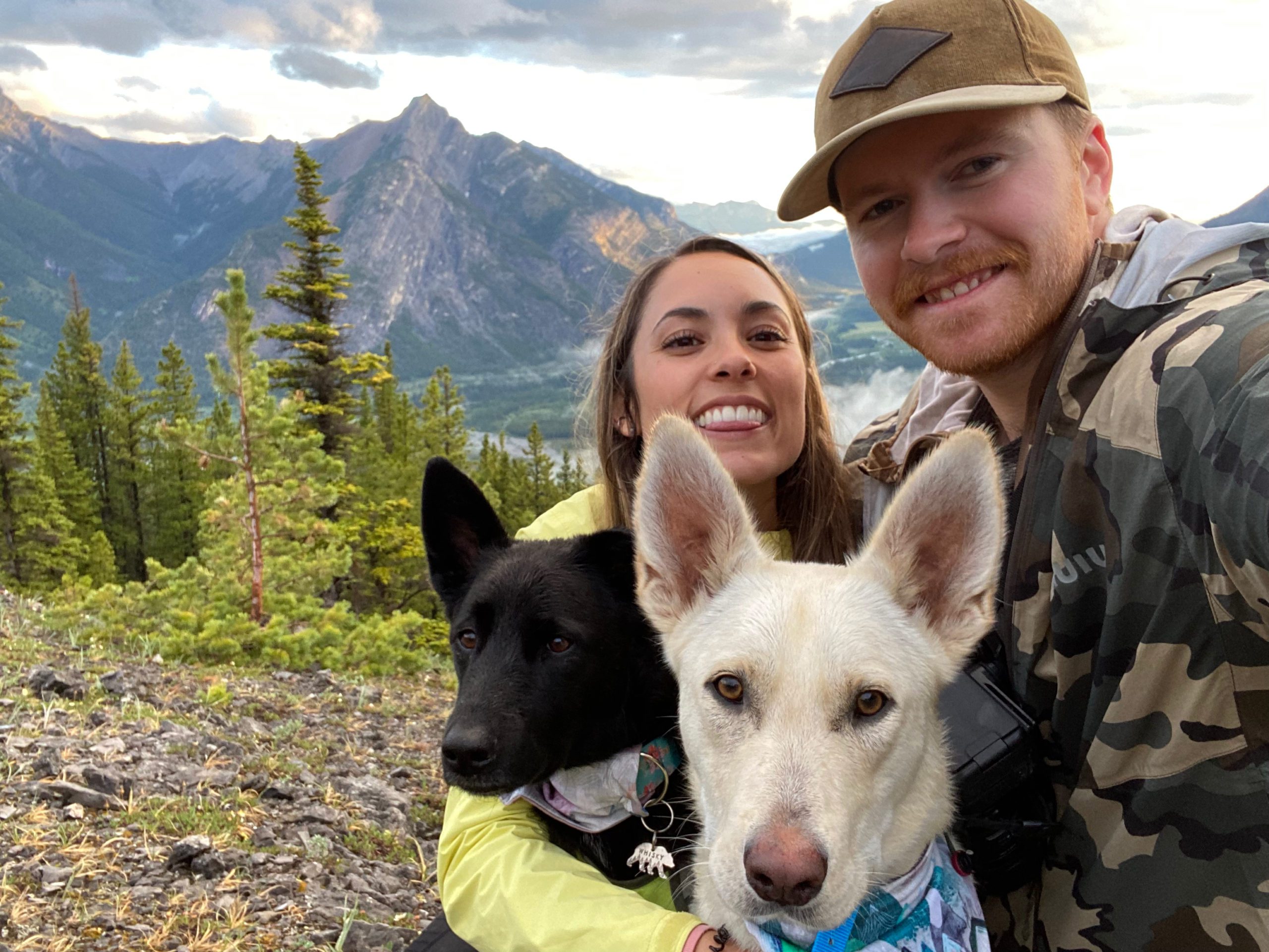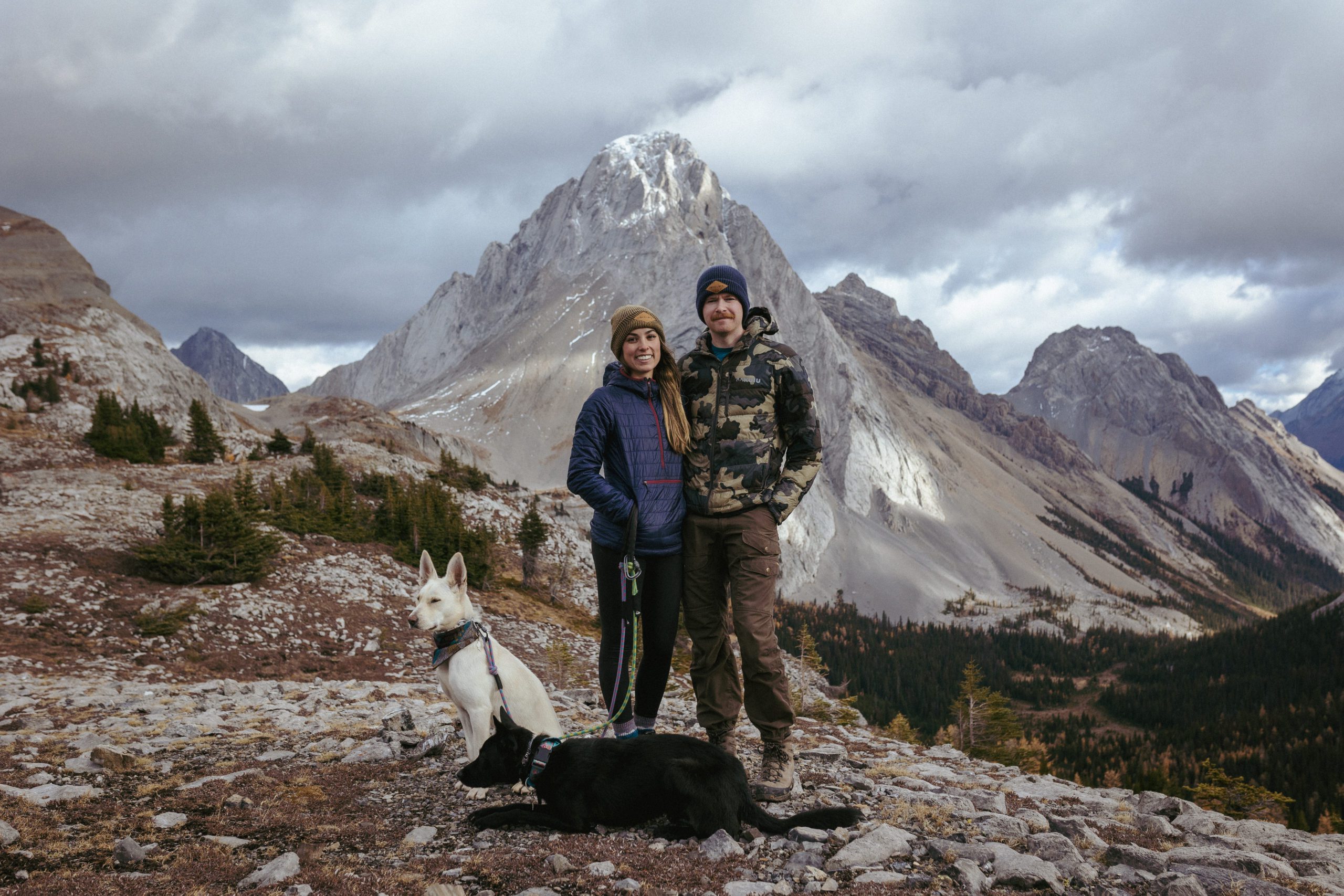 Jared and Taffin met briefly back in 2015, but didn’t reconnect again until summer 2016 at a music festival, and began dating shortly after. They adopted Whisky in 2018, Jared “popped” the question with a Ring-Pop (yes, a Ring-Pop!) at the end of 2019, and then they had a secret, intimate backpacking elopement in summer 2020 on their four year anniversary, in the middle of a pandemic! They spent their honeymoon week backpacking, trailer camping, and hiking and fishing in their favourite places in Alberta. After eloping, they decided another pup needed to be added to the family, so they adopted Echo to complete the adventure pack at the end of 2020. They call Rural Mountain View County home, and are just outside a small hamlet located north west of Cochrane, Alberta. They recently bought an acreage and are working hard to bring their homesteading dreams to life.